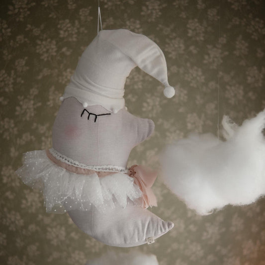 Circus Moon hanging nursery art, Cotton plush moon decoration