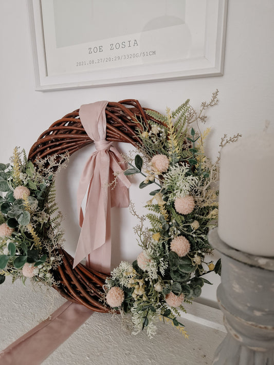 Front door flowers wreath, spring artificial wreath