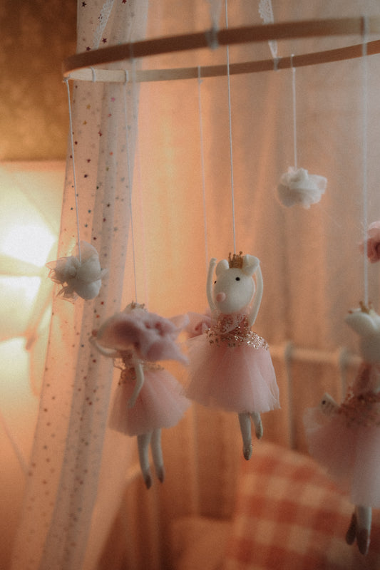 Carousel felt mobile, Mice Ballerina Hanging art, Mouse circus crib mobile