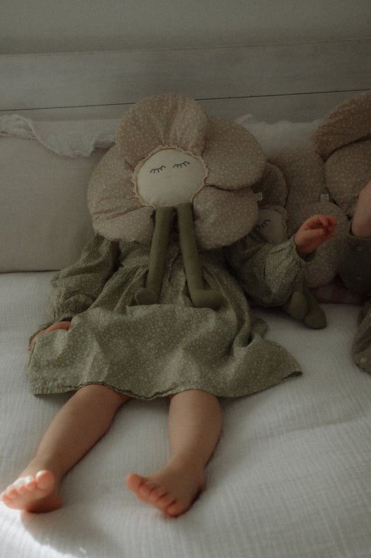 Beige Flower Pillow, Baby Girl Nursery Decor, Botanical Wall Hanging
