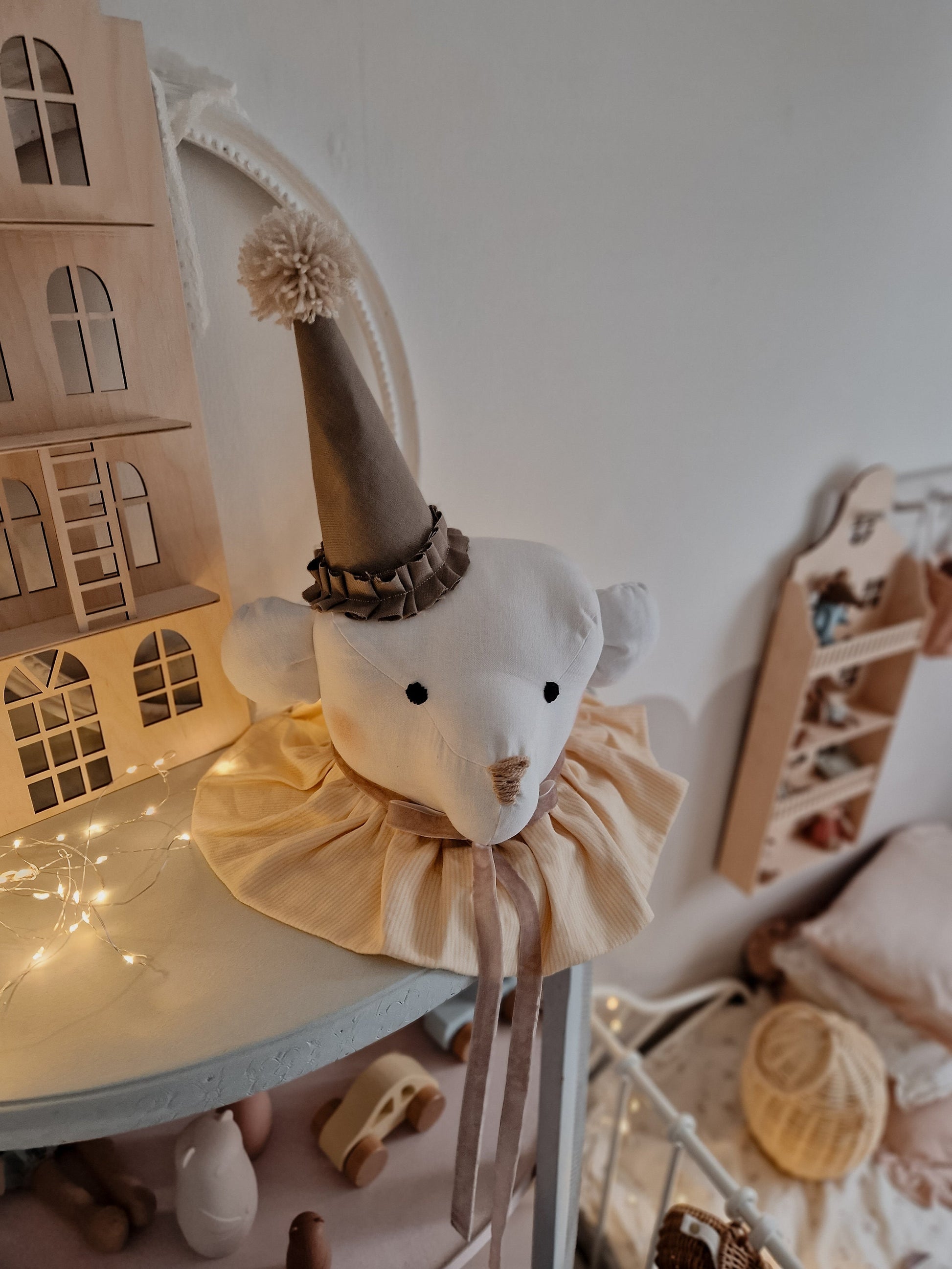 Handcrafted with love and care, this adorable piece brings a touch of whimsy and warmth to your little one’s space. Whether you hang it above your baby’s crib, place it in a playful corner, or showcase it on a bookshelf, this circus teddy bear wall art adds character and fun to any room. Ideal as a baby Christmas gift or first birthday gift, this versatile piece also makes a wonderful baby shower gift or a delightful addition to your child’s nursery.