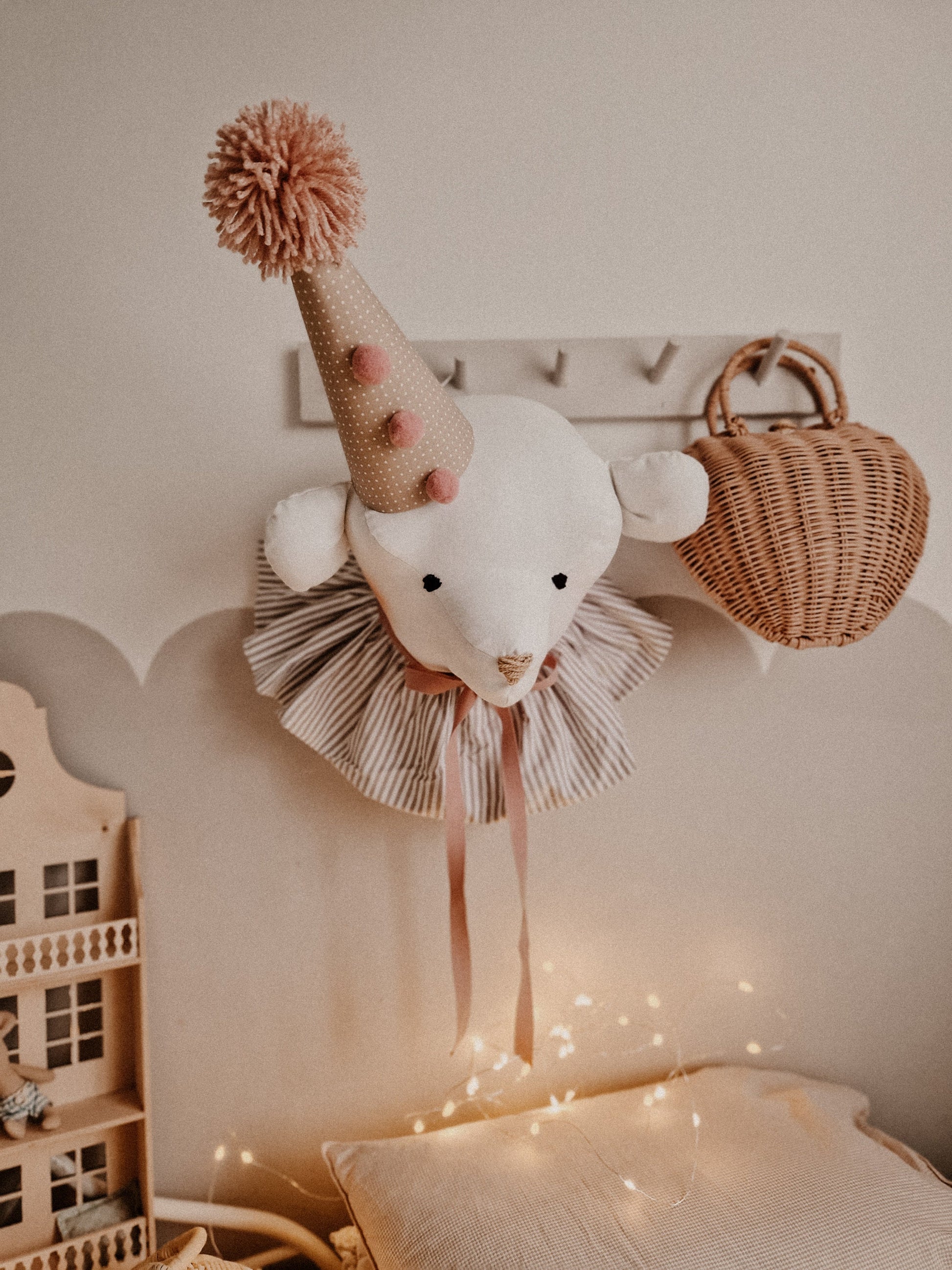 Add a whimsical charm to your nursery today with this adorable bear head wall decoration. It’s sure to be a treasured part of your little one’s space.