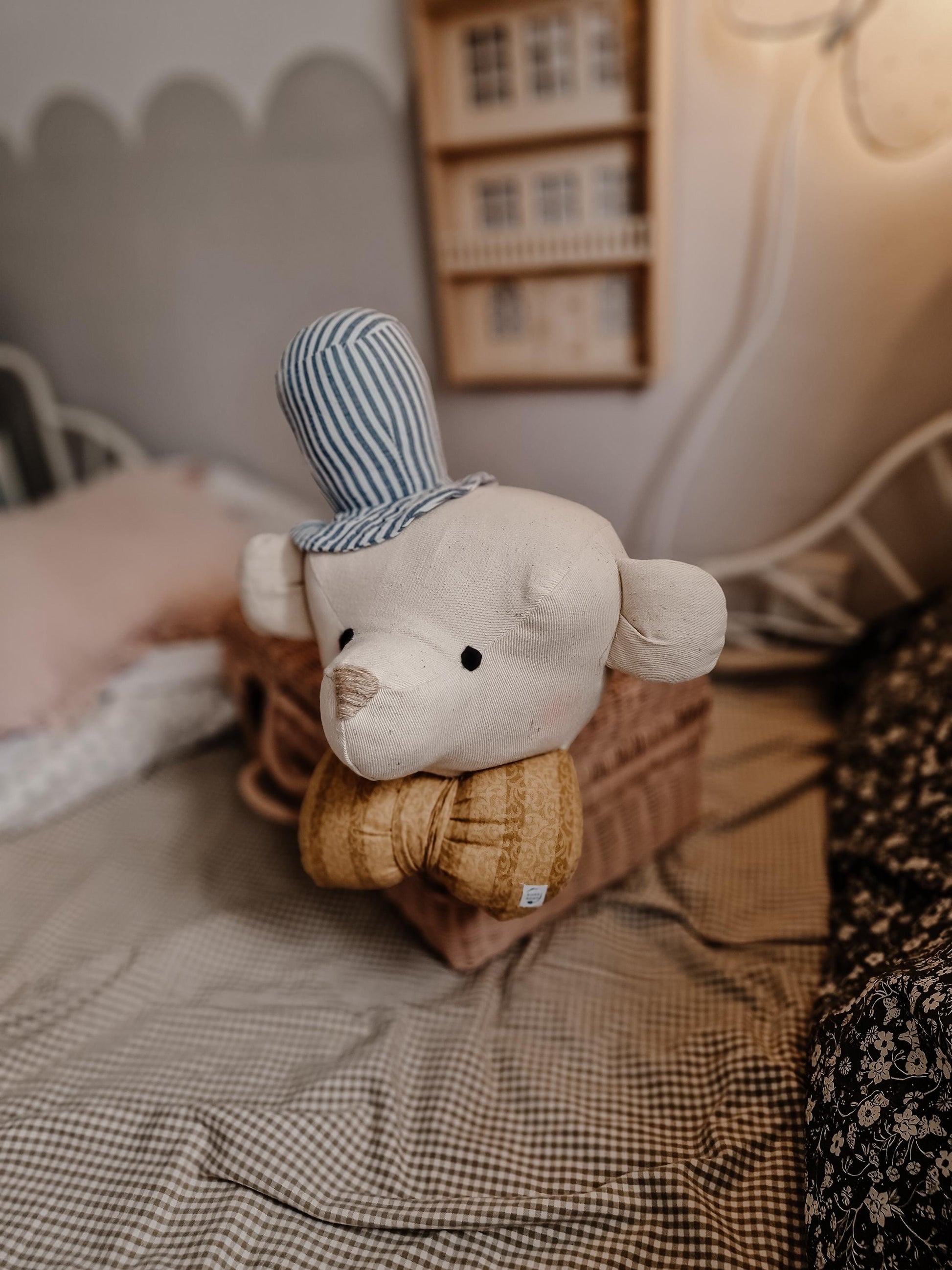 Whimsical Bear Head Wall Decoration – Plush Teddy Bear Nursery Decor, Handmade Baby Room Wall Art, Circus Bear Wall Mount