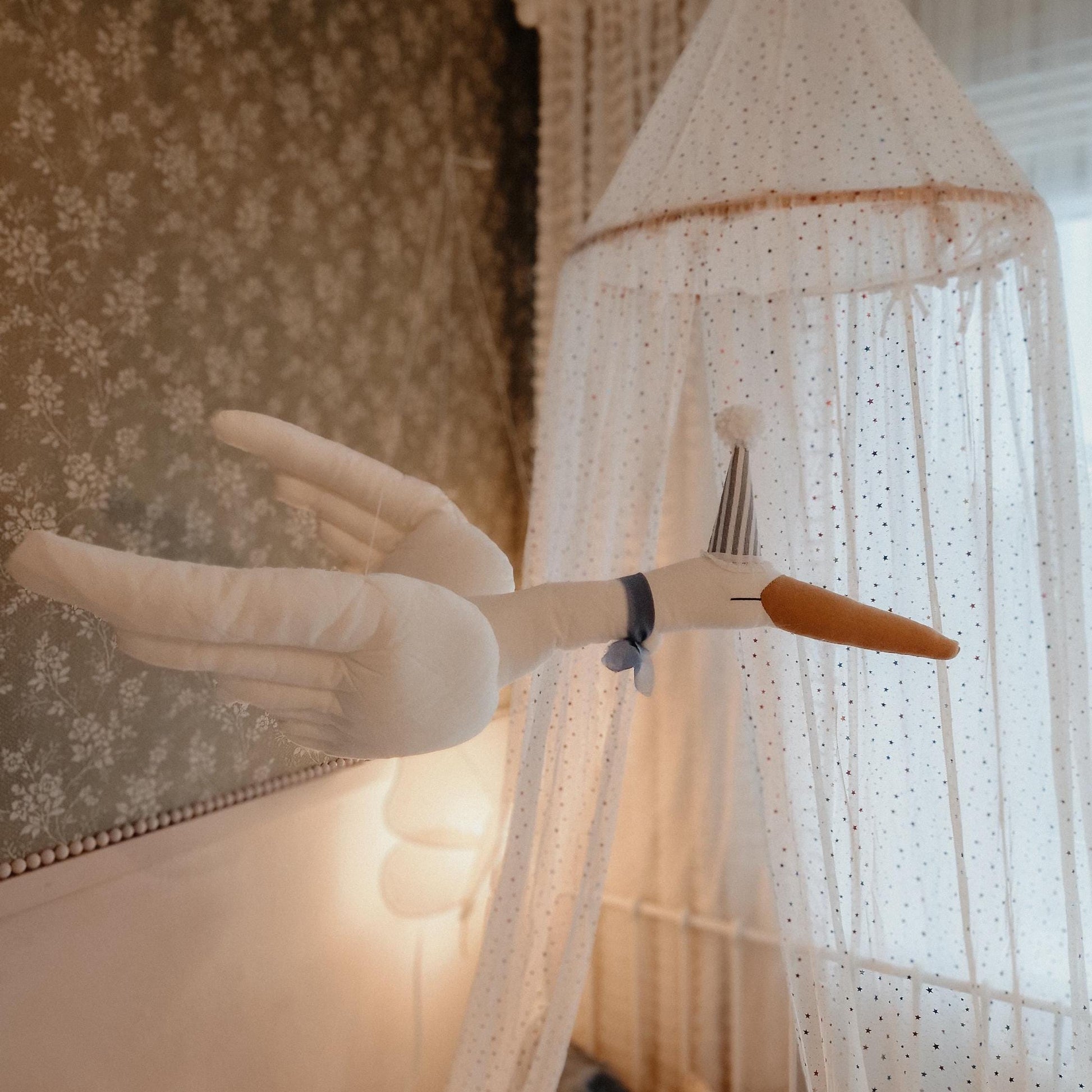 Handmade with High-Quality Materials: Crafted with care from premium cotton, this elegant flying bird plush adds warmth and beauty to your little one's space.