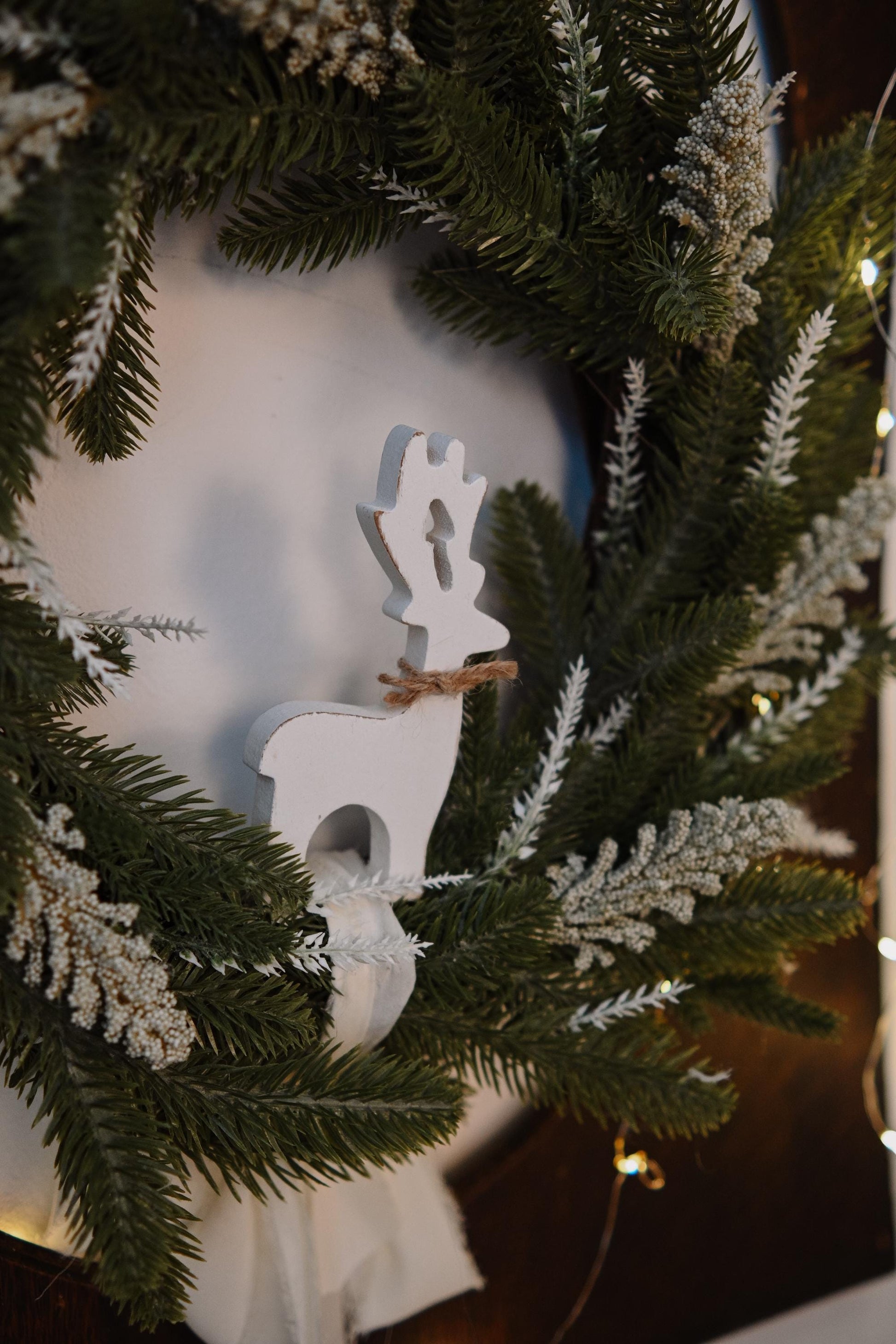 Looking for a unique Christmas gift or a way to add festive charm to your home? This Christmas wreath with a white deer is perfect for holiday decorations, bringing a winter wonderland feel to any space.