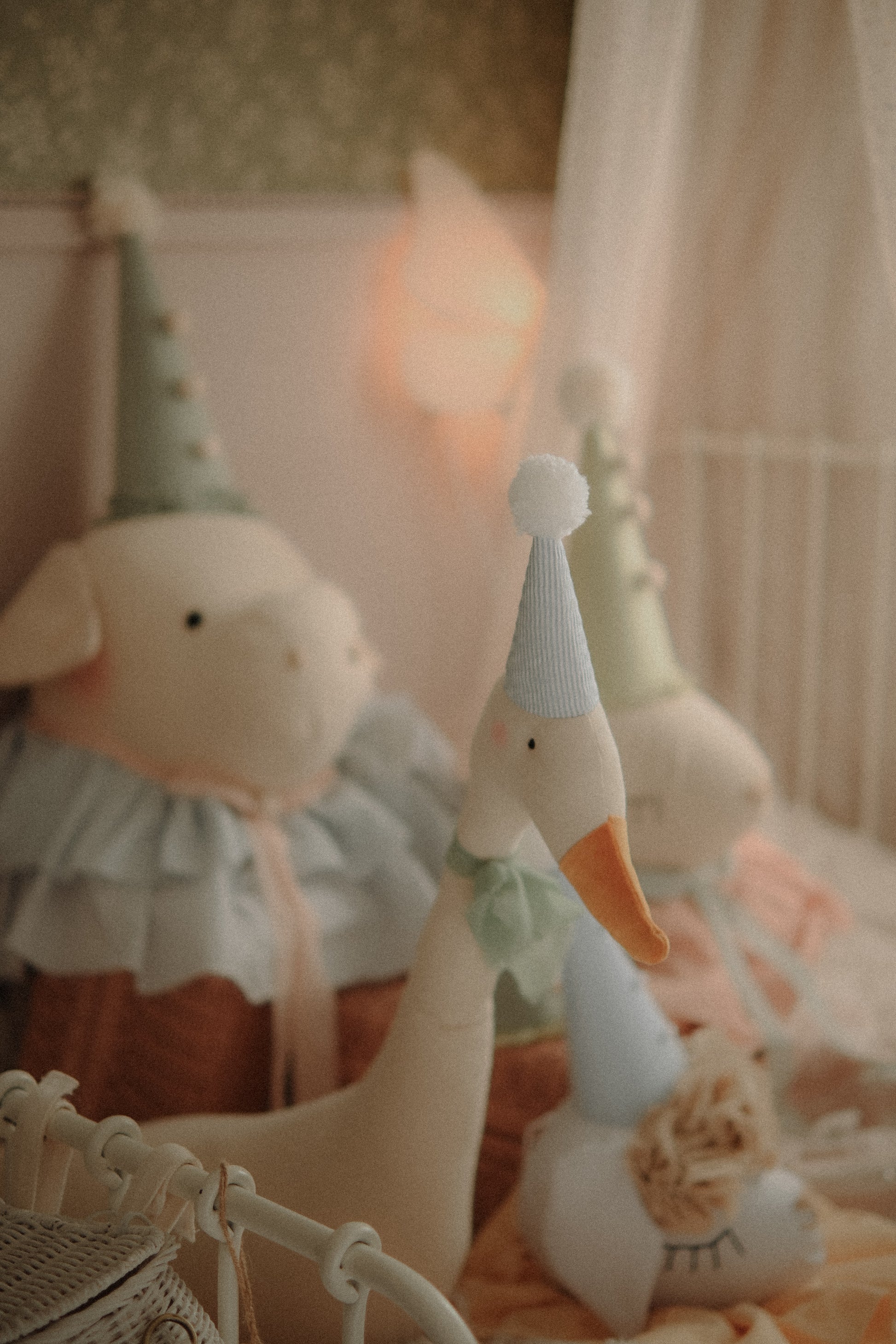 Large circus goose soft toy – handmade sitting goose with hat, circus-style décor for nursery, baby shower or birthday
