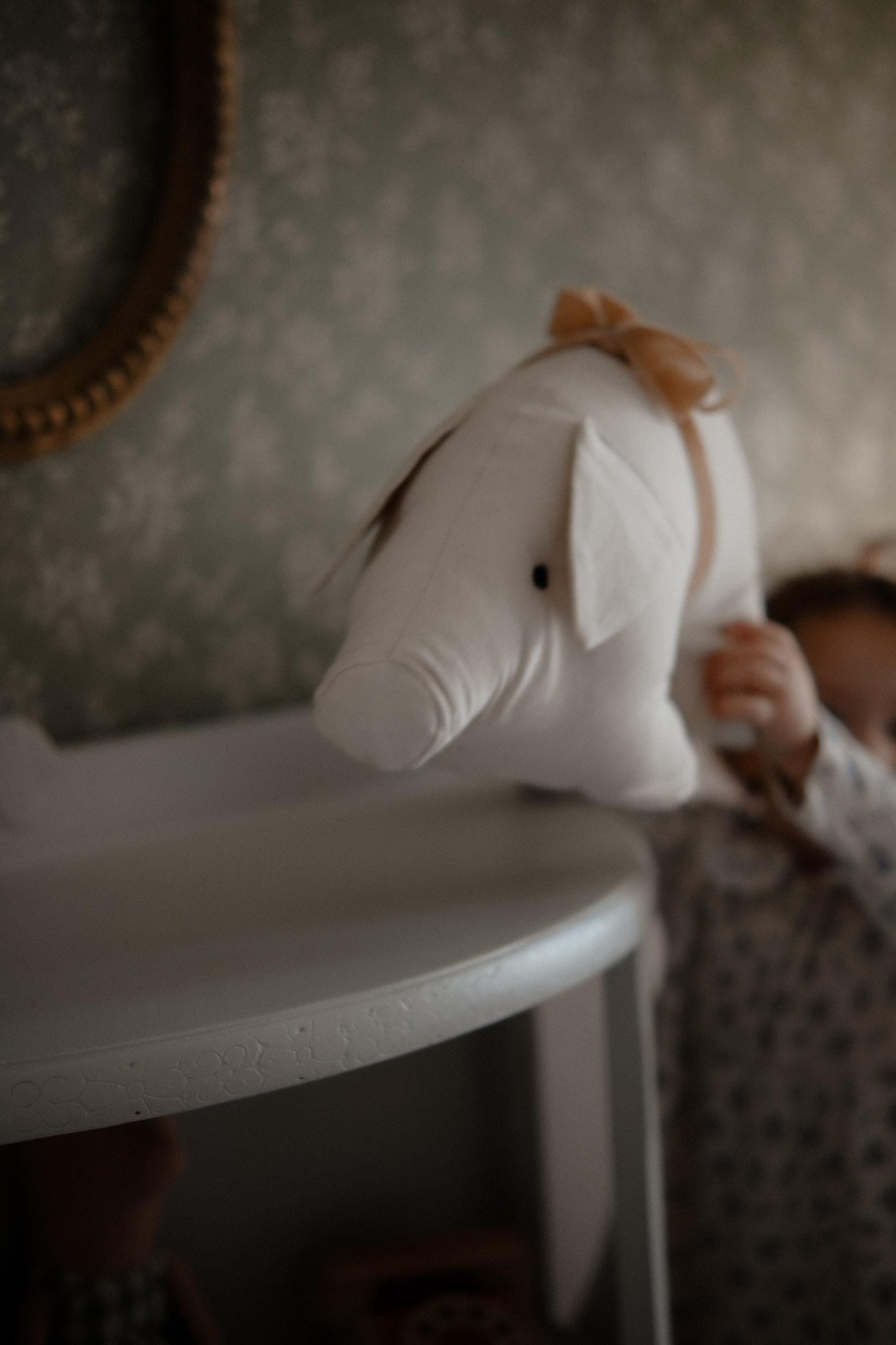 Farm Animal Nursery Decor: The cute beige pig design adds a whimsical, farm-inspired touch to any nursery or child's room.