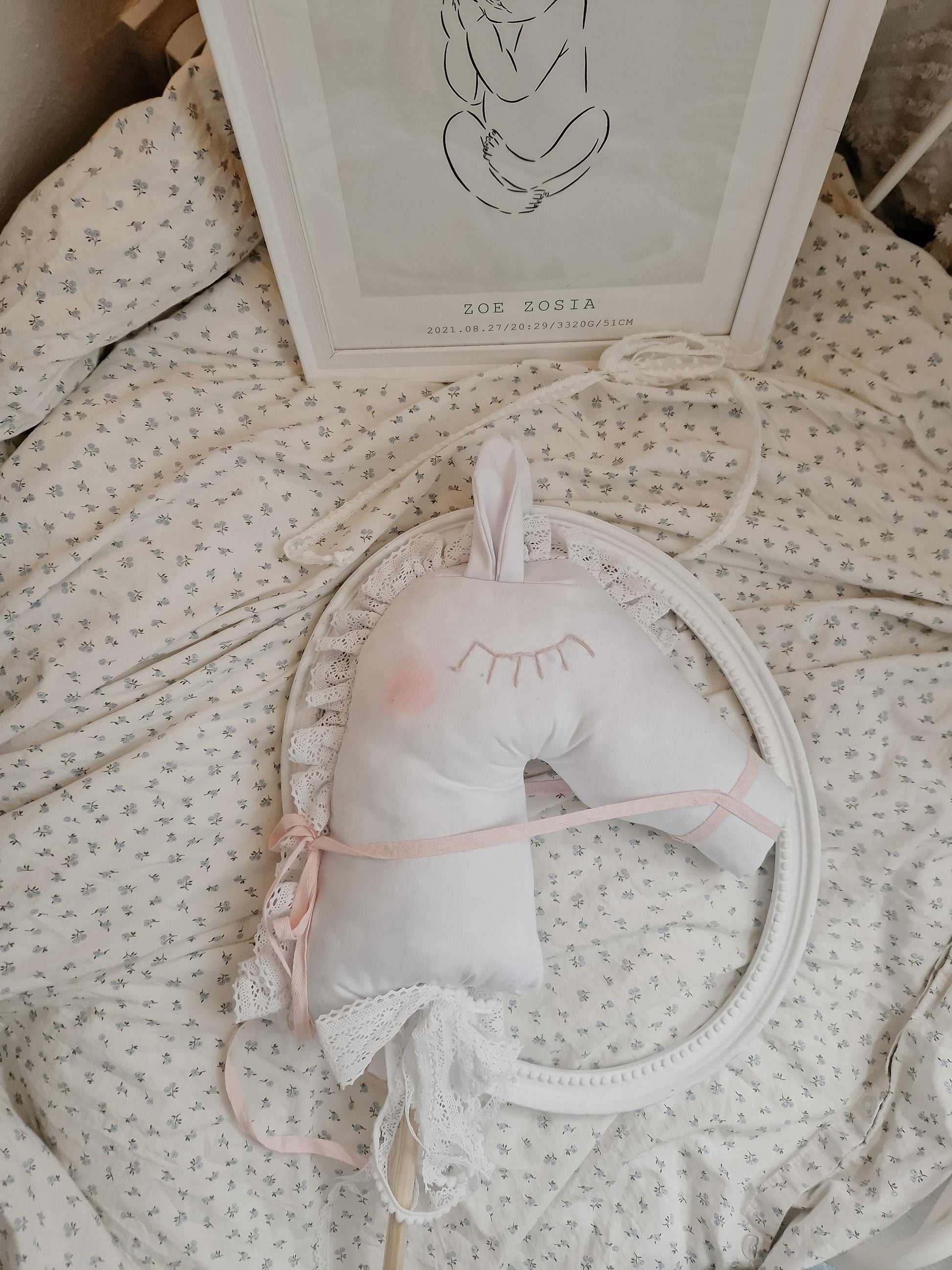 Introduce a touch of charm and elegance to your child's room with our White Hobby Horse on the Stick. Perfect for nursery decor or as a beautiful addition to any kids' room, this handmade plush horse is designed to enhance the aesthetic of your space. With its minimalist Scandinavian design, this gender-neutral hobby horse is ideal for a Montessori-inspired nursery or modern baby room.
